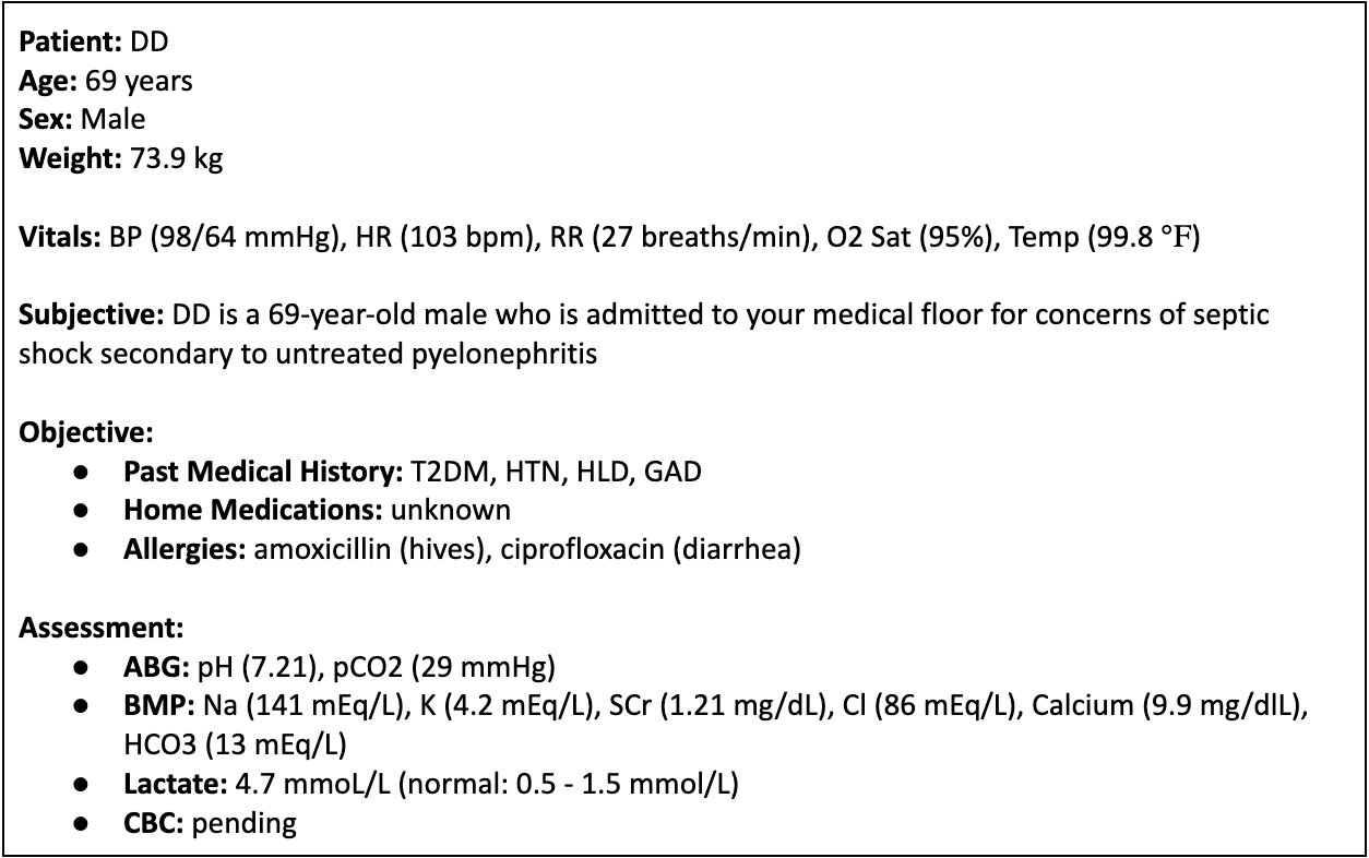 P.S. I made this case very NAPLEX esque. Speaking of the NAPLEX, be sure to check out our NAPLEX resources here. Anyway, enough with the shameless plugs. Back to the case.