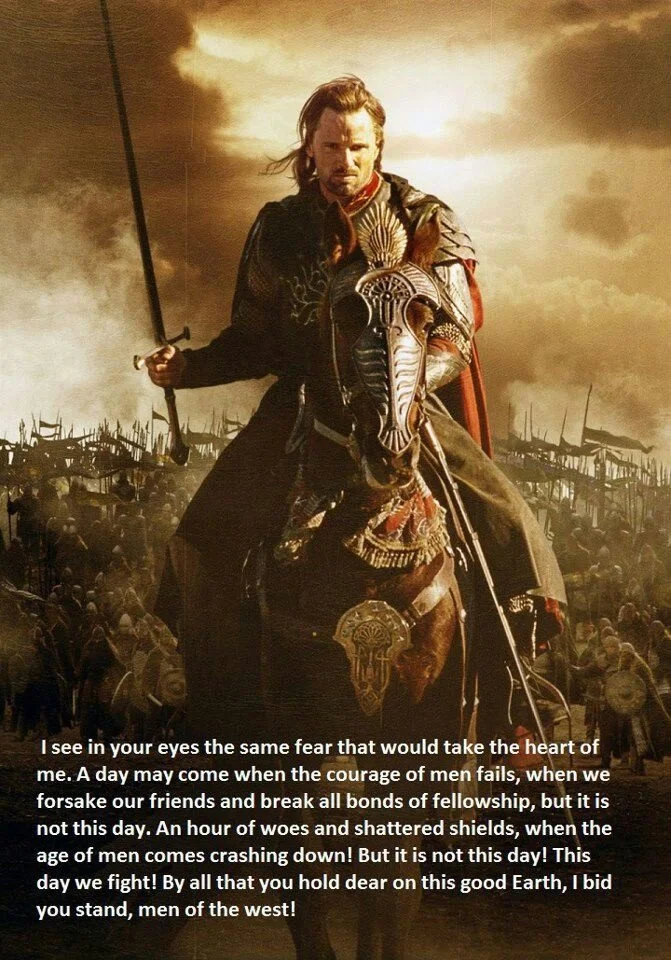 Doesn’t get much more boss than this, am I right? Sure, there’s the Braveheart or Gladiator speeches… But c’mon, it’s Aragorn. (Image)