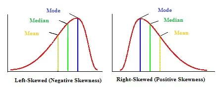 Not all data is normally distributed. Sometimes the bell curve is more like a rolling wave crashing into a breaker. Data sets can be positively or negatively skewed. The "skew" goes in the direction of the tail of the data, not the bulky hump.