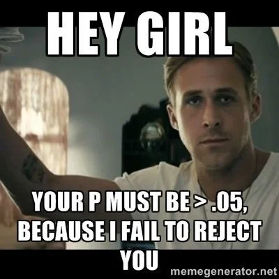 The terminology is kind of weird and "lawyer-speak" here. I'm not sure why we make it so confusing on ourselves and others. But when we discuss the results of a study, we don't "reject" the null hypothesis; we "fail to accept" it. Maybe this is to soften the blow so that the null hypothesis doesn't feel bad about itself? It's kind of like saying "It's not you, it's me...I failed to accept you." The opposite is true, also. If the null hypothesis is true, then we don't accept it; we fail to reject it.
