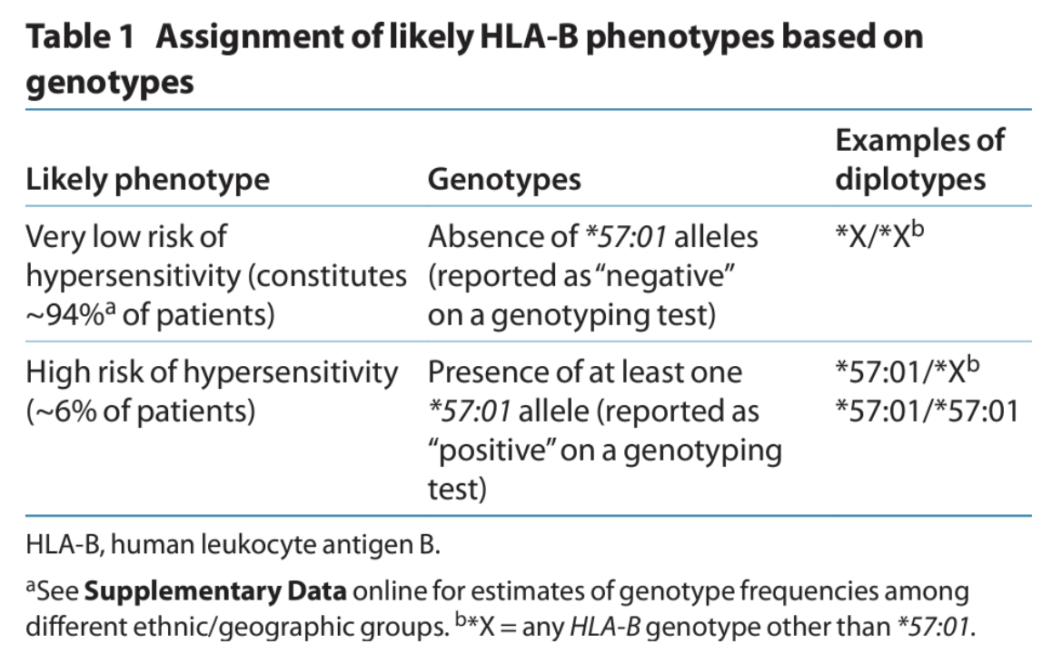 The tl;dr of HLA-B genotype and use of abacavir. (Image)