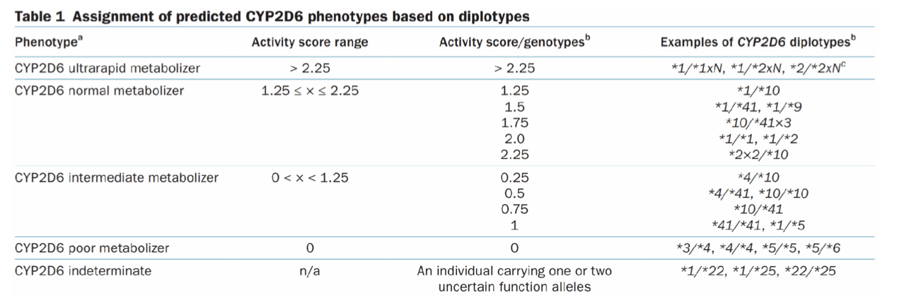 For those of you who crave the deets, here's all the info of CYP2D6 phenotypes. (Image)