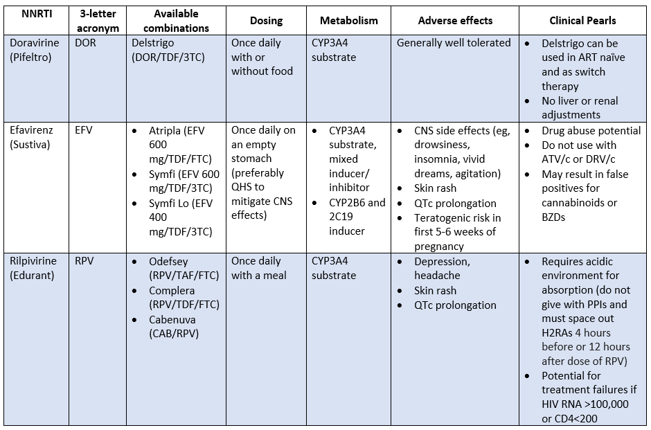It's worth mentioning that nevirapine and etravirine are still on the market but aren’t NNRTIs currently recommended as part of ART. These guys are notoriously bad when it comes to rash, liver toxicity, and DDIs. So, you likely won’t see these in clinical practice.
